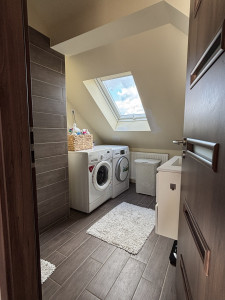 A tetőteret 7 éve építettük be, földhivatalilag rendezett, lakótérként került bejegyzésre. Használati megosztással, akár ketté is osztható, így két külön lakrész kialakítására is van lehetőség, mivel a fenti térben is kialakításra került minden olyan feltétel - fürdőszoba, fűtési mód, lépcsőházi bejárás -, ami ezt lehetővé teszi. Használati megosztás után - kisebb átalakítással - akár két lakásként is értékesíthető, használható.