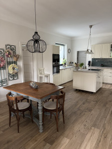 - étkezővel egybenyitott konyha beépített IKEA konyhabútorral