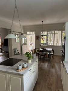 Érd és Törökbálint határán, Érdliget csendes, biztonságos kertvárosi részén kínálunk eladásra egy korszerűsített családi házat 115 m² hasznos alapterülettel, 30 m² melléképülettel egy gondozott, ősfás 2070 m² (osztható) telken.