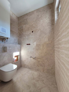 Prémium olasz dizájner fürdőszobai szerelvények, mennyezetig érő tömör kőris ajtók – minden részletben ott a minőséget sugárzó elegancia.