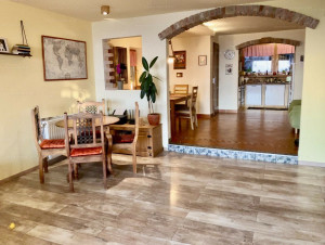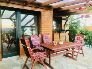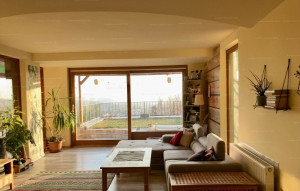 There are three apartments in the condominium, we are in the middle, the entrances are completely separated. When we moved here in 2019, we had the house insulated (12 cm) and plastered from the outside, the terraces were covered with wood and a weatherproof polycarbonate roof, and the floor covering was replaced. All windows (double-glazed, insulated) and doors are made of wood.
