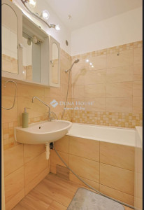 A közlekedő és a vizes helyiségek kerámia lappal burkoltak, a szobák laminált parkettával fedettek.