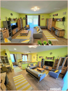 A helyiségek bútorozottak, illetve berendezettek használati tárgyakkal és design elemekkel. A beépített konyhabútor gépesített, az az van benne: indukciós főzőlap, elektromos sütő, hűtő, fagyasztó, mosogatógép. Továbbá edényekkel, poharakkal és evőeszközökkel feltöltött. A képeken és a videón látható összes bútor és eszköz (TV, mosógép, porszívó, szárító, vasaló, vasalódeszka, felmosó, íróasztal és éjjeliszekrény lámpa, szemetes vödrök), továbbá design tárgyak (szőnyegek, faliképek, faliórák, vázák, díszpárnák, művirágok) egytől-egyig a vételár részét képezik. Az új tulajdonosnak semmit sem kell magával hoznia, csakis önmagát, a szeretteit és a ruháit. :-)