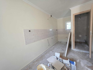 LEGYEN ELSŐ LAKÓJA ennek a 100 négyzetméteres, kétszintes, amerikai honyhás nappaliból (földszint) és 3 külön nyíló szobából (emelet) álló erkélyes, nagy kerttel rendelkező családi háznak. A belső munkálatok november elejére befejeződnek. Ami még nincs a képeken: új konyhabútor, mosogatógép, mosógép, elektromos tűzhely és sűtő. A lépcső alatt beépített szekrény, alul és felül is WC. A konyhában hidegburkolat, a szobákban padlószőnyeg.