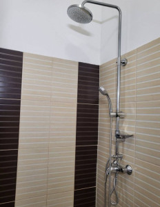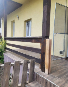Az alsó szinten a konyha, egy szoba és a tusolós fürdő, a felső szinten két szoba, kis előtér és a kádas fürdő kapott helyet. A terasz 10, a telek 150 négyzetméter.