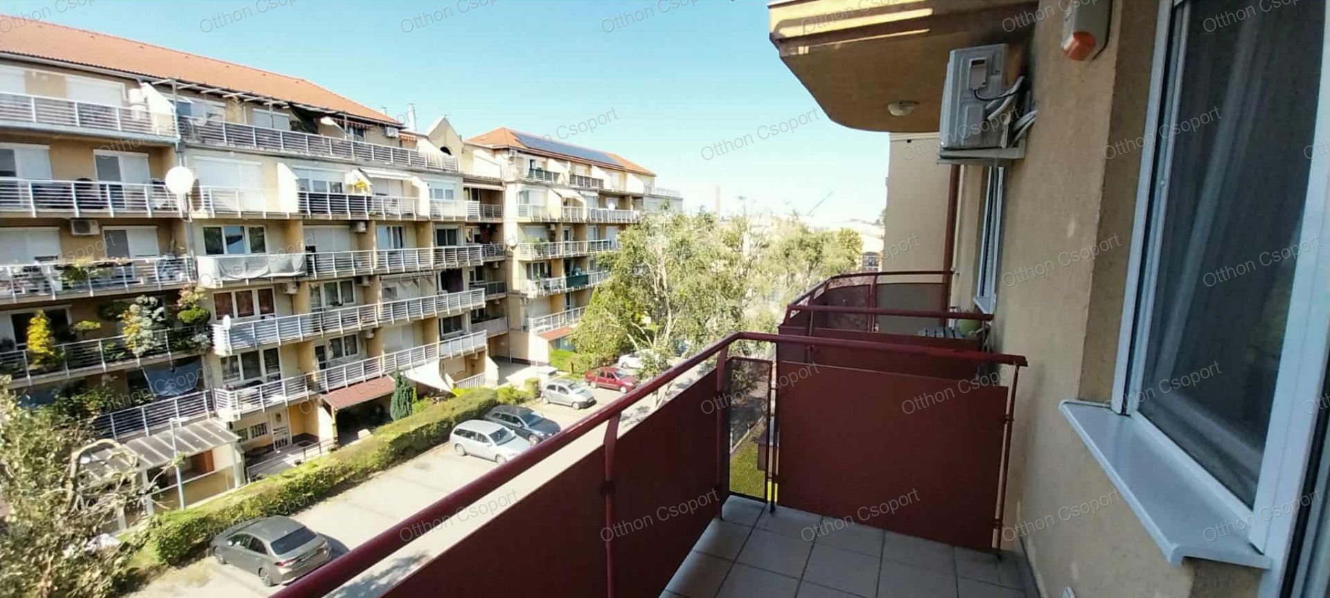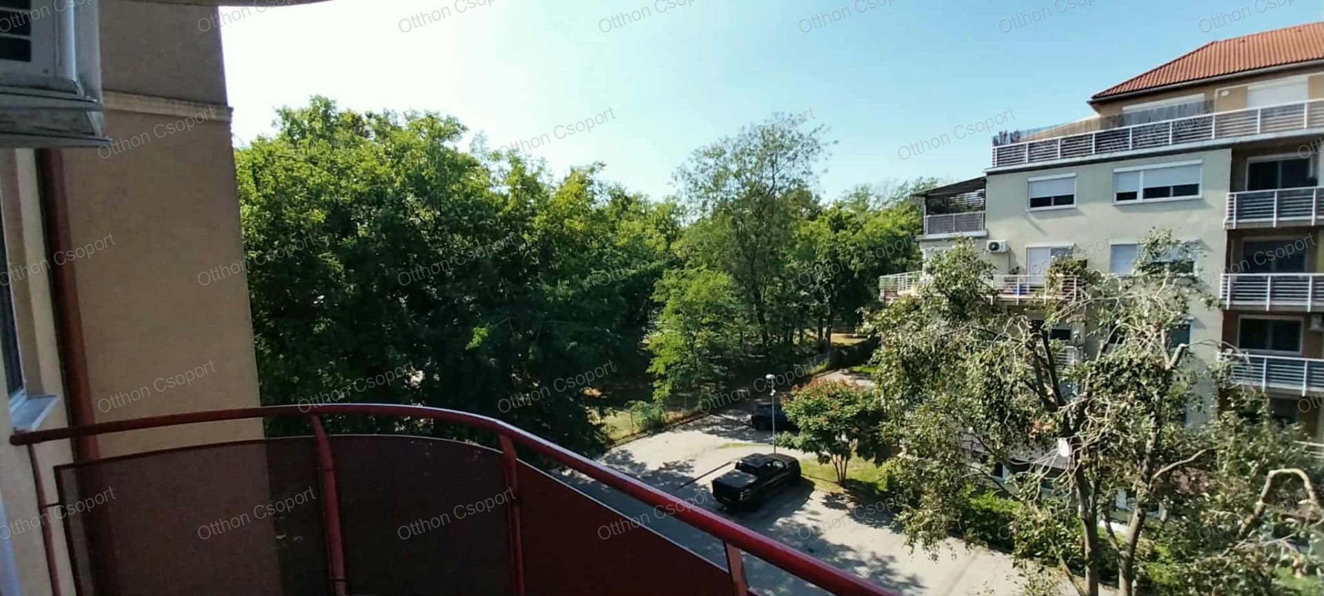 Az erkély a Népligetre néz, a lakás nagyon csendes.