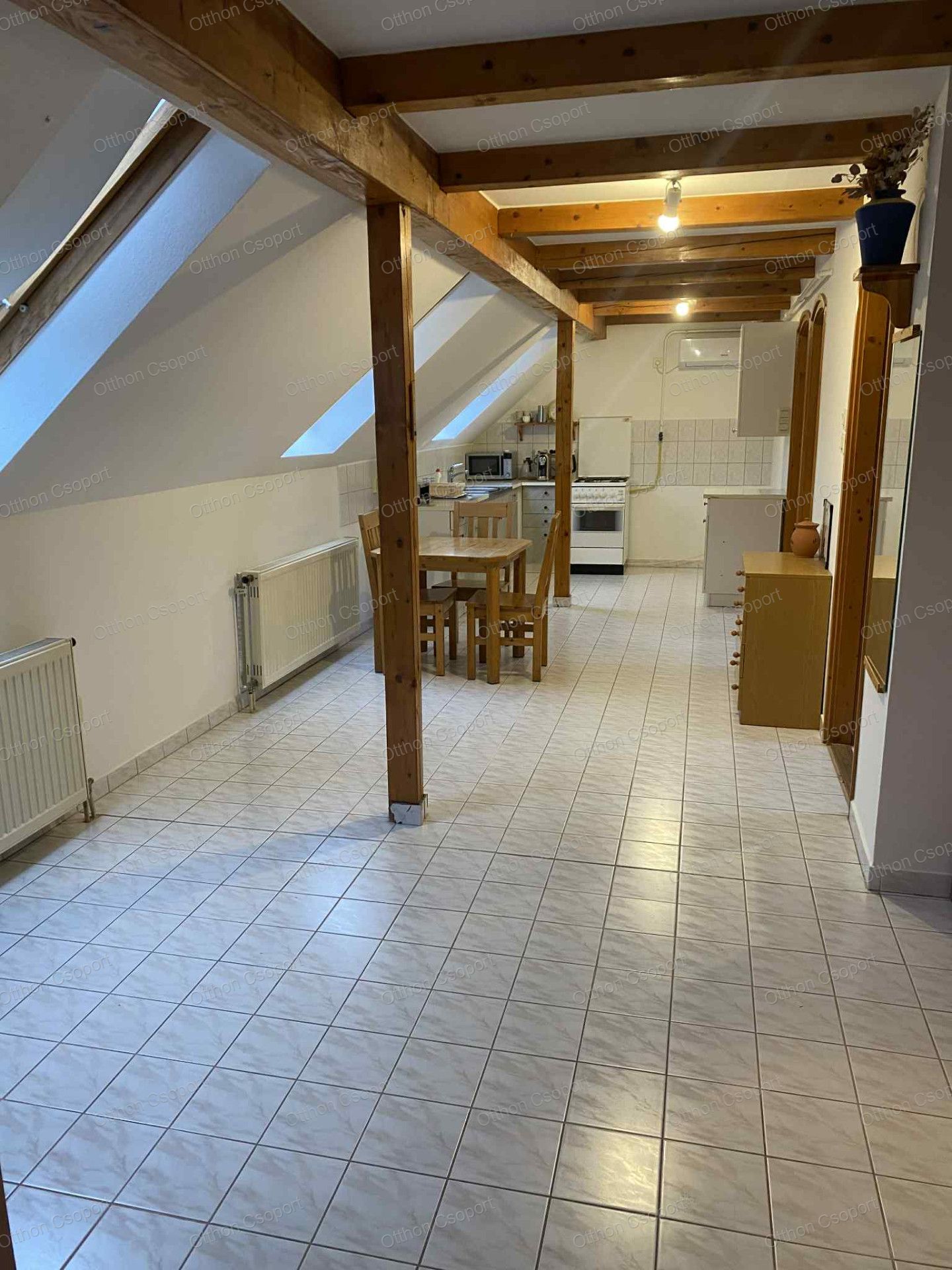 - Egy légterű nappali, konyha, étkező