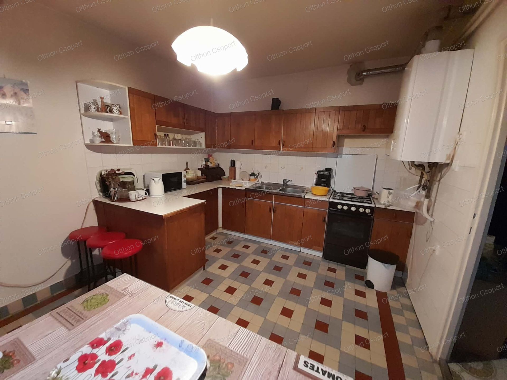 - Földszinten: cserépkályha + 120 literes Hajdú villanybojler