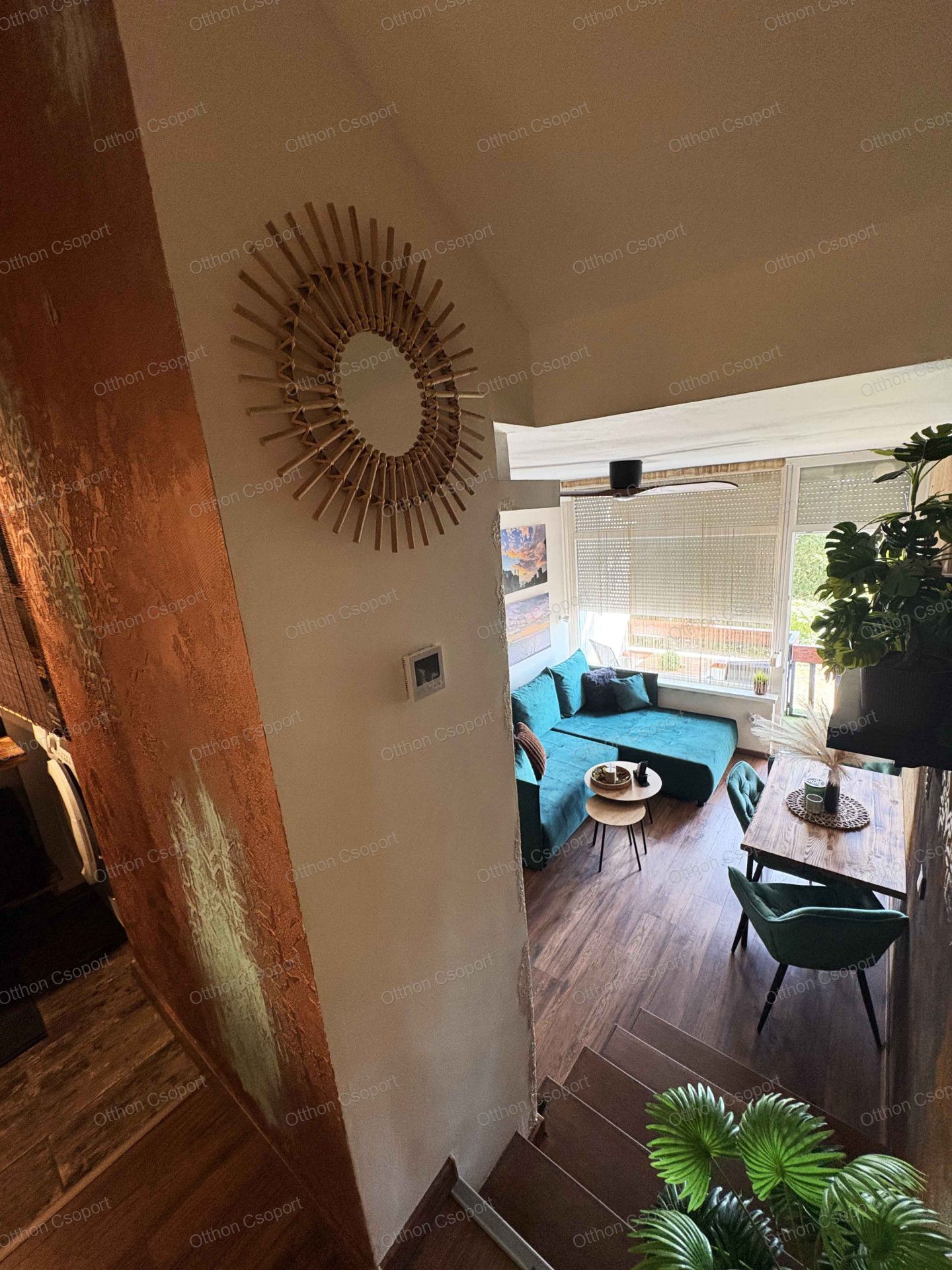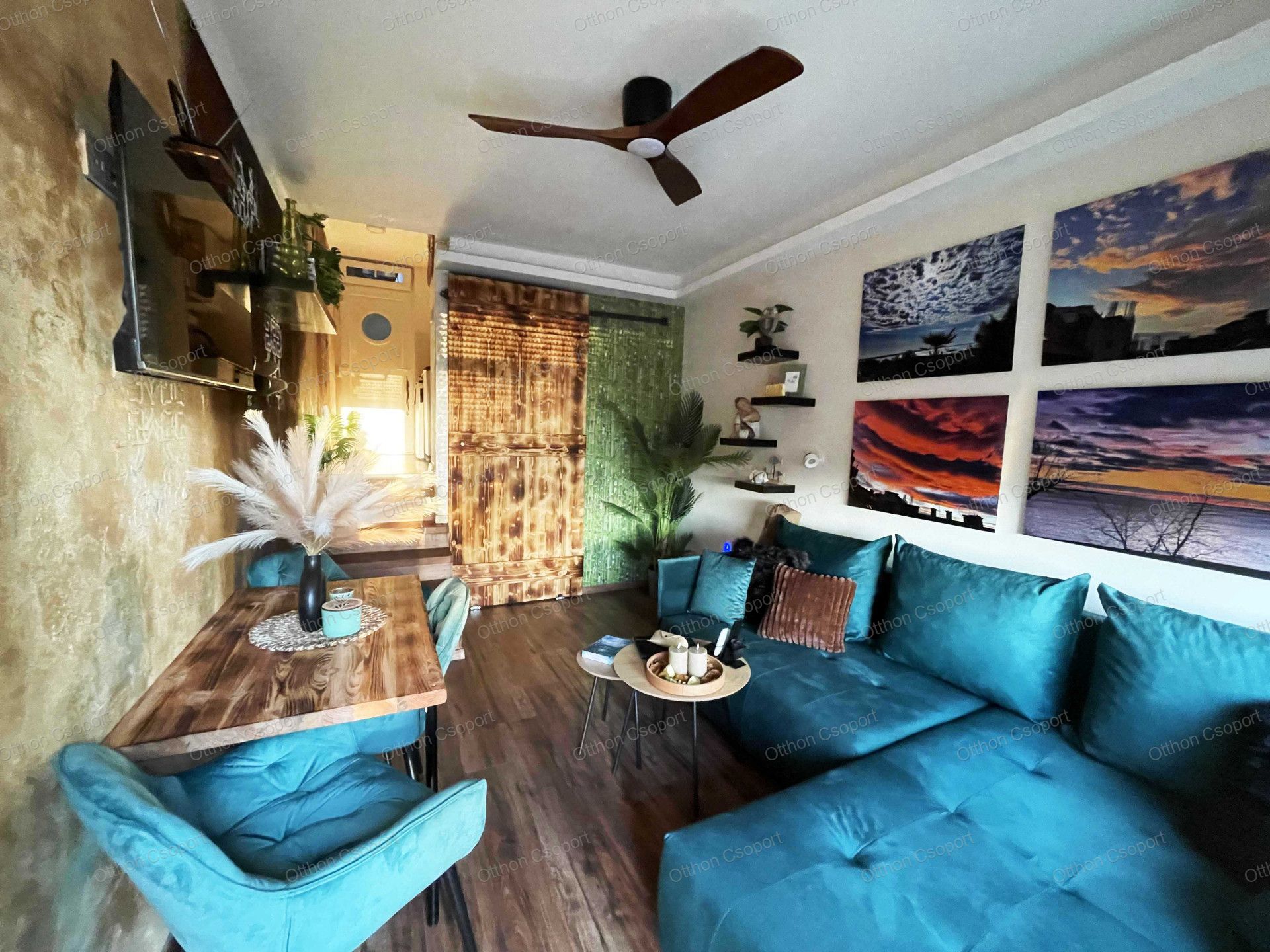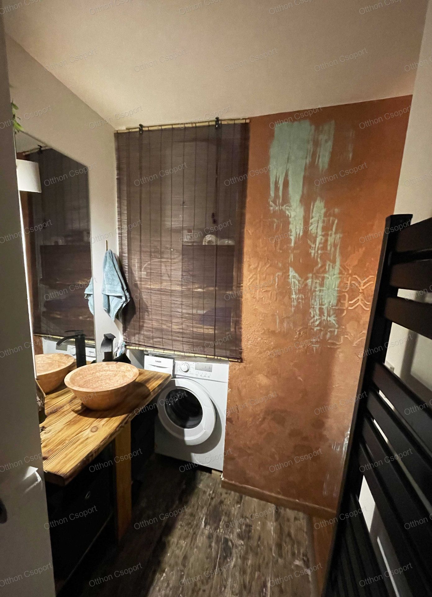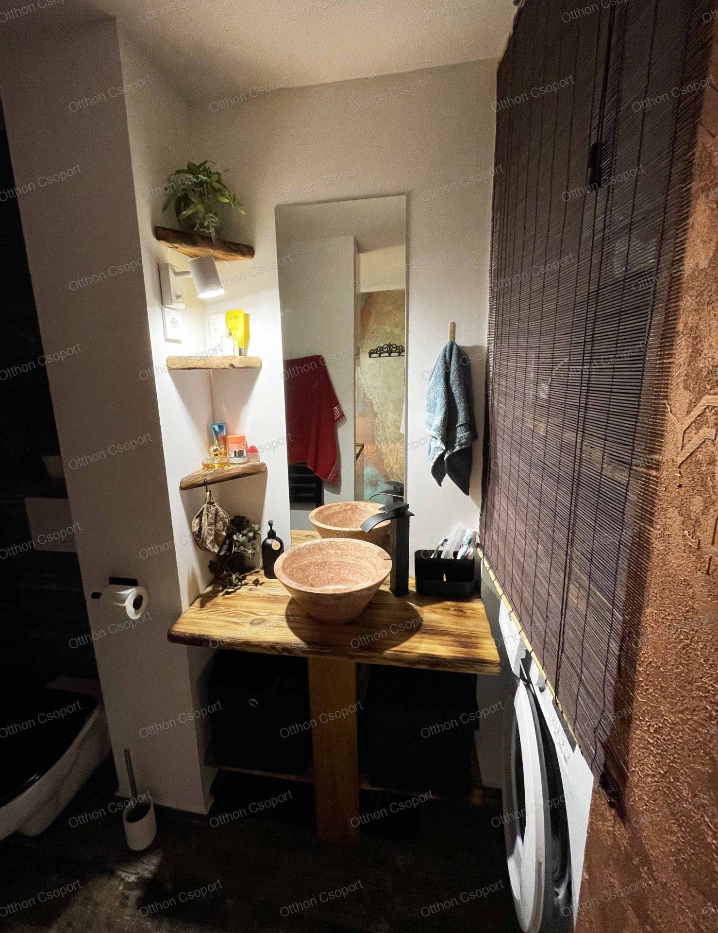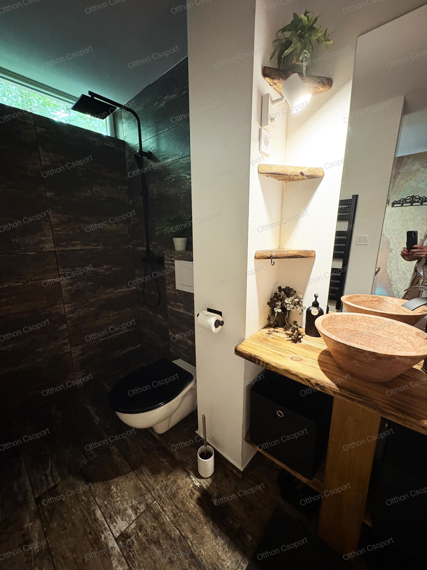 Egyedi tervezésű, prémium design-apartman eladó Balatonalmádi Káptalanfüred részén társasüdülőben, a teraszról balatoni panorámával, gondozott, közös használatú kerttel, napozóval, grillezővel, kiülővel, közúton 600 méterre a hangulatos, családias Káptalanfüred strandtól, gyalog se több néhány percnél. Saját, zárható, árnyékolt kocsibeállóval, parkolóval közvetlenül a ház mellett (amely részét képezi az adásvételnek). Műszakilag tökéletesen felújított és tervező által megdizájnolt állapotban, tehát teljesen új elektromos és vízhálózattal, teljes felületén elektromos fűtőszálas padlófűtéssel, szobatermosztáttal. Dél-keleti tájolású, szépen árnyékolt, földszinti nyaraló, a teraszról kijárással a gyönyörű kertre, melyet kertész gondoz. Alapterülete 25,3 m2, egy nappali/háló kihúzható kanapéval, + egy vendég-fotelágy, 3 személy részére kényelmes alvási lehetőséggel, ill. 3 személyre szabott ebédlőasztallal, tágas gardróbbal. Teljeskörűen berendezett, új konyha rész új háztartási gépekkel, önálló fürdőszoba tusolóval, wc-vel, 50 literes bojlerrel. Terasz 5 m2, 2+2 személy számára kiülési lehetőséggel, balatoni panorámával. A legtöbb bútor, ill. berendezés egyedileg tervezve és gyártva borovi fenyőből a lehető legoptimálisabb helykihasználással. Csodás panoráma nyílik bentről is a nappaliból a Balatonra a hatalmas üvegfelületen keresztül. Az árban foglaltatik az összes berendezési tárgy és bútor okostévével, hűtőszekrénnyel, mosógéppel, dísztárgyakkal, mindennel együtt. Kiadásra, szállásoltásra, turizmusra remek megtérülésű befektetésként, avagy saját használatra pihenésre, töltődésre, kikapcsolódásra egyaránt kitűnő lehetőség. Ára: 49 M Ft. 06209730443 Igény esetén örömmel megmutatom személyesen, hívjon bátran.