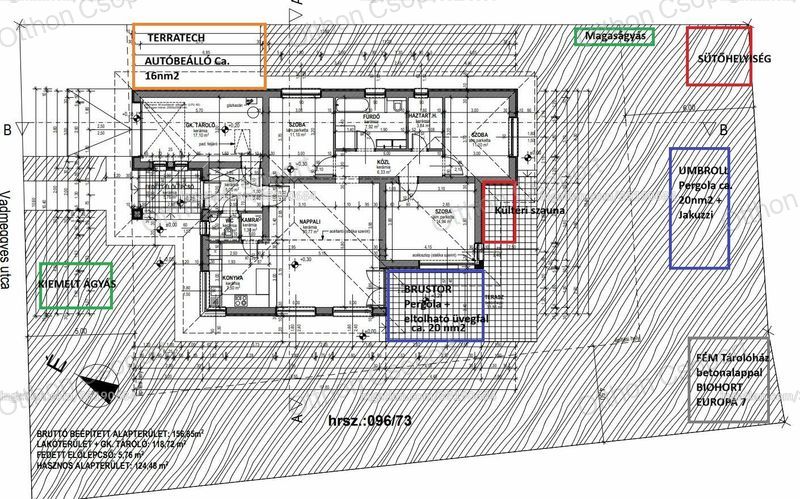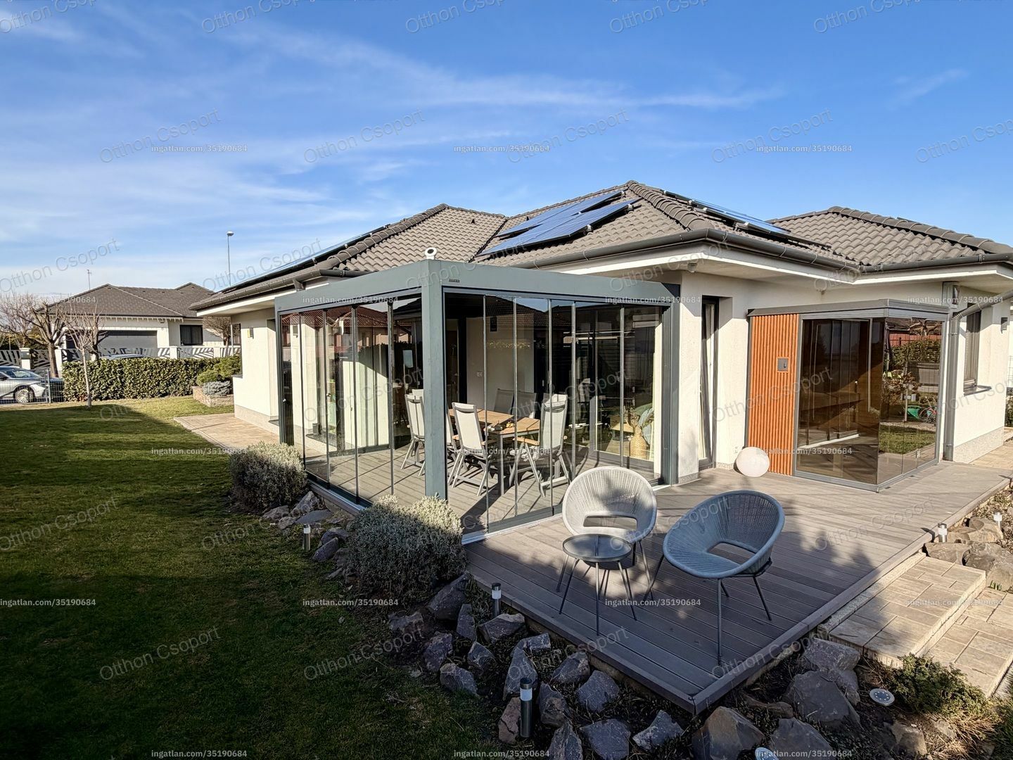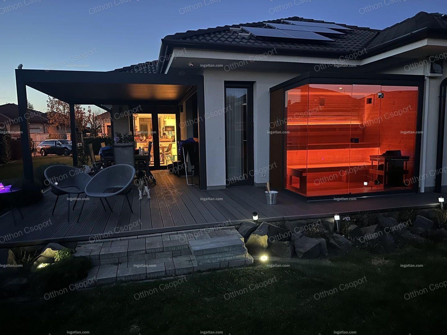 - Különleges extrák: bioklimatikus pergola a terasz felett üvegfallal (Brustor), ami télikertént funkcionál. Relax sziget -szintén pergolával (Umbroll) - az udvaron. Grillező/sütő helyiség szintén kiépítve a kertben.