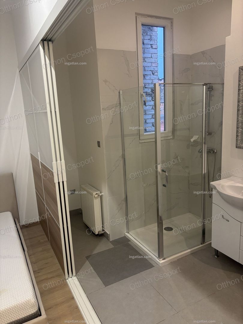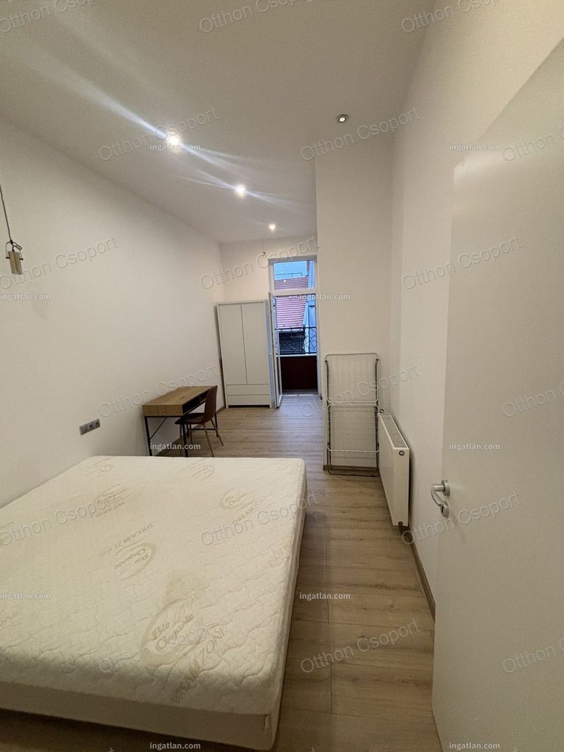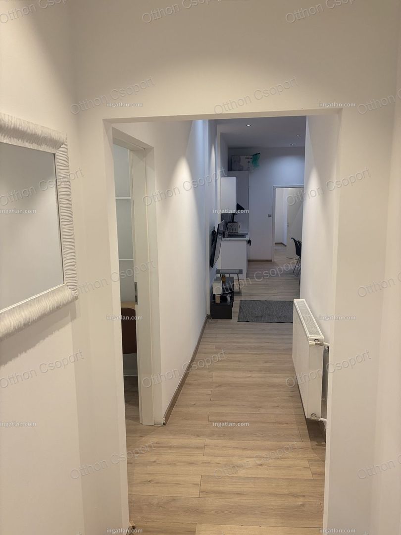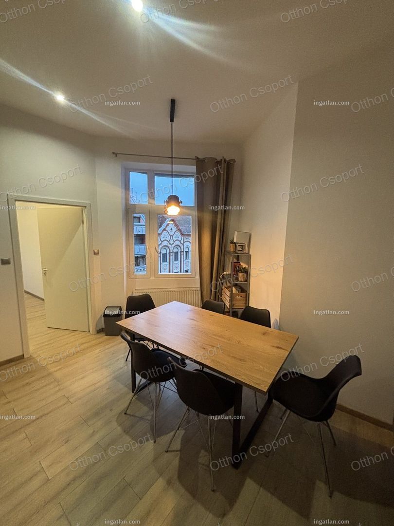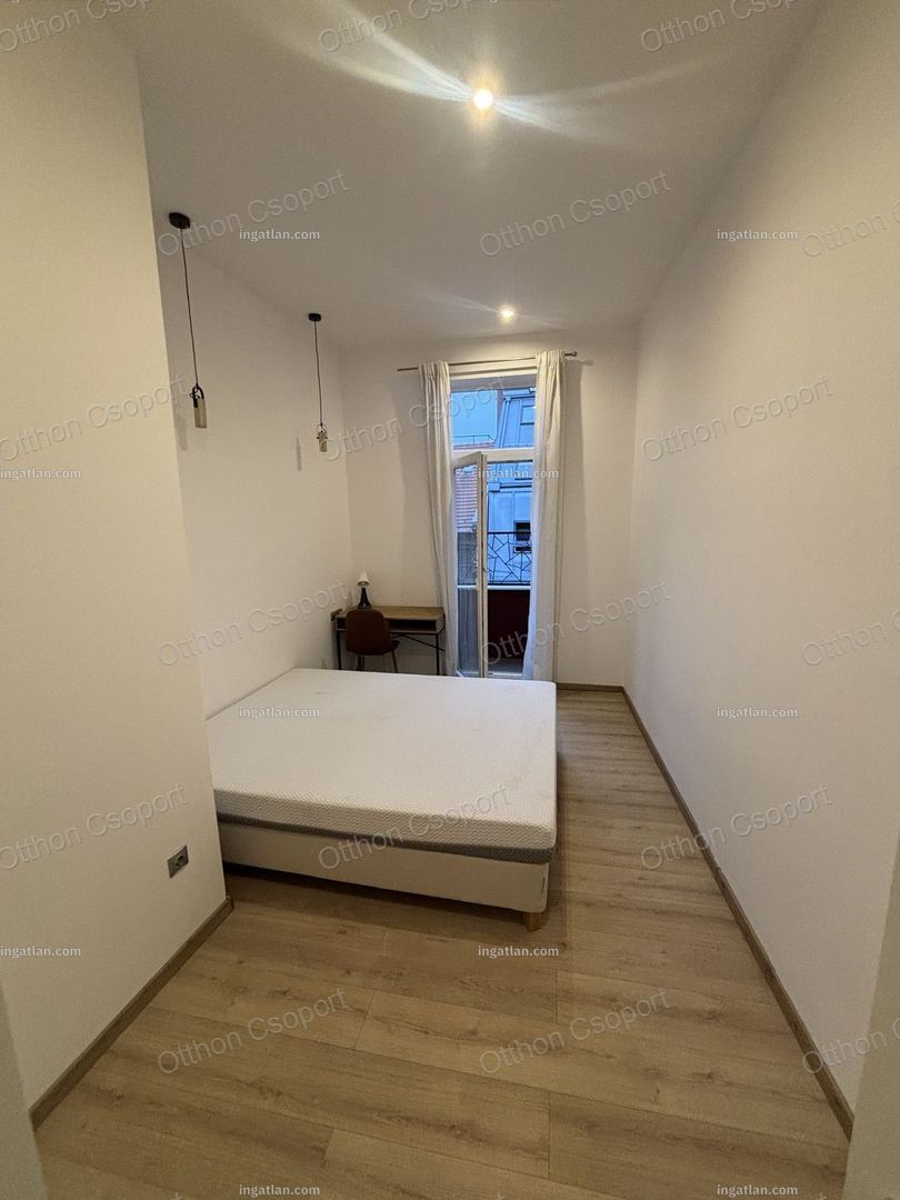 Eladó VI. kerület Csengery utcában egy 4. emeleti frissen felújitott, modern design lakás. Hivatalosan 99 m2, de valójában 10 m2-rel nagyobb. A jelenlegi formáját 6 éve nyerte el, amikor a válaszfalak átépitésével egy 4 hálószoba plusz amerikai konyhás ( beépitett túzhely, sutő és mosgatógép)nappalivá lett átépítve, melyben 3 fördőszoba és 2 WC is helyet kapott. A lakás jelenleg bútorozott, de igény esetén üresen is megvehető. A lakáshoz tartozik 2 francia erkély is. A konyha teljesen felszerelt gépekkel beleértve mosgatógépet is. A hálószobákből 2 saját fürdöszobával rendelkezik, melyek mozgatható falakkal vannak a vizes helységektől elválasztva. A fútést és melegvizellátást kondenzációs kazán biztosítja. A padlót laminált parketta borítja. A lakás pár év használat után most esett át egy felújjitáson.